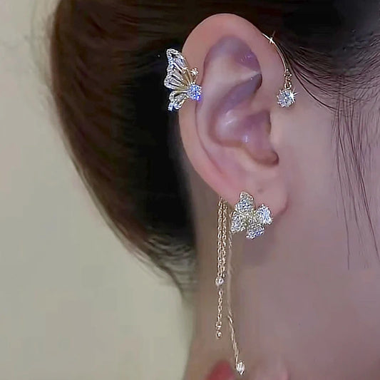 Arete Mariposa sin Perforación y colgantes (Regalo estuche especial)
